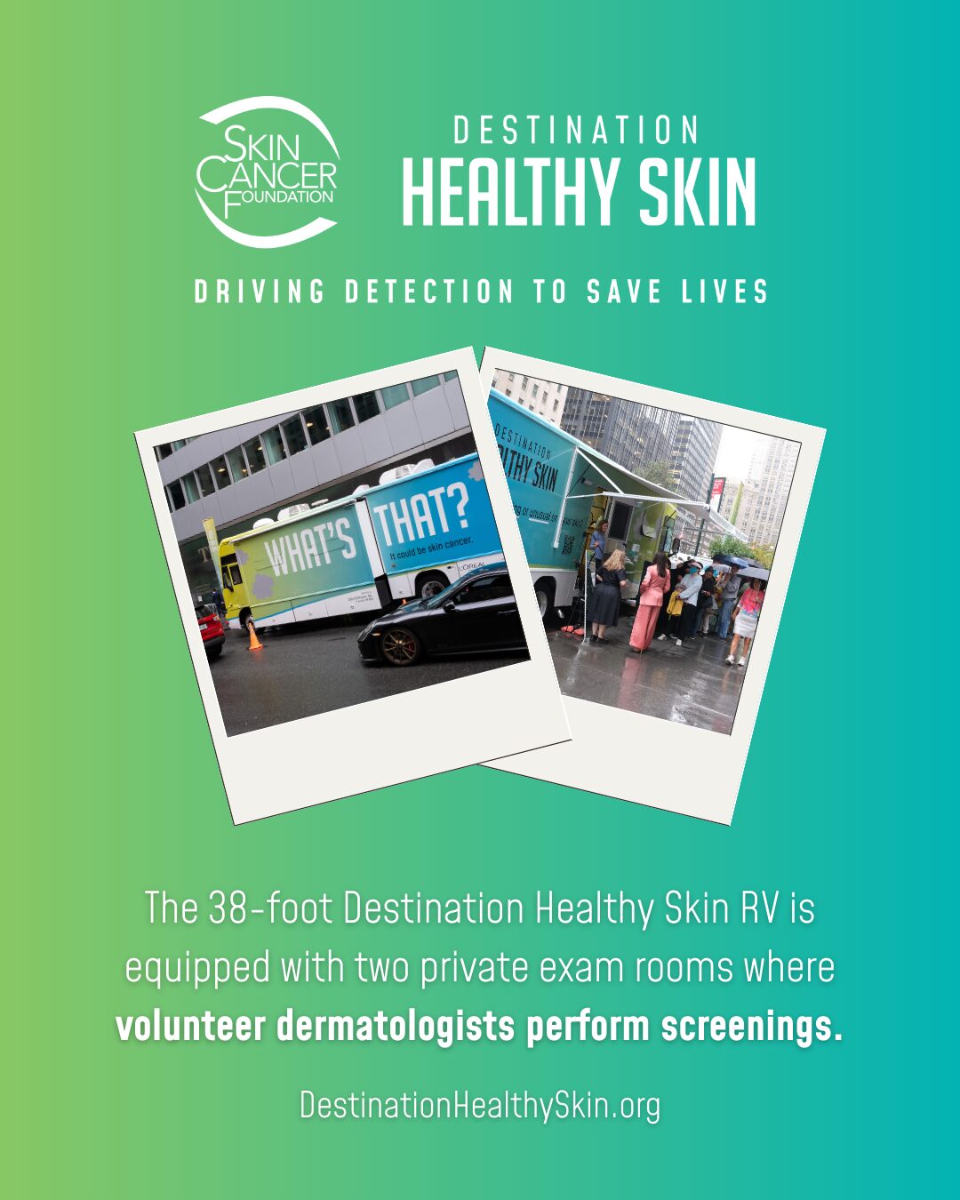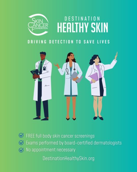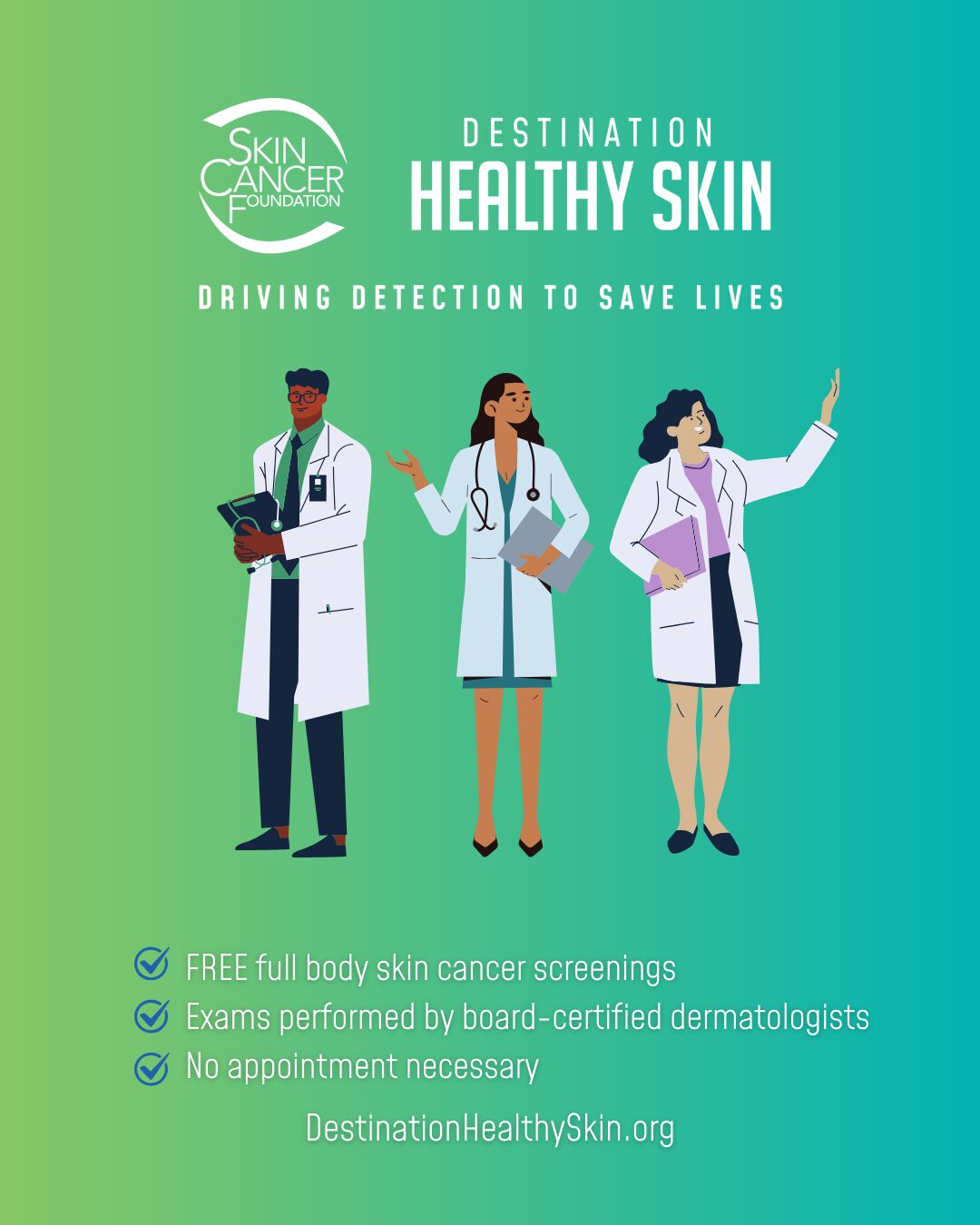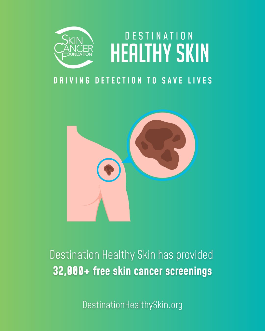 We’re on a journey to save lives and you can help. Please share about Destination Healthy Skin on social media. Our toolkit gives you downloadable images and resources to help you spread the word about our free skin cancer screenings and educate your friends about the importance of early detection.