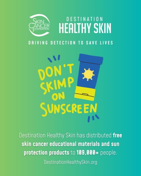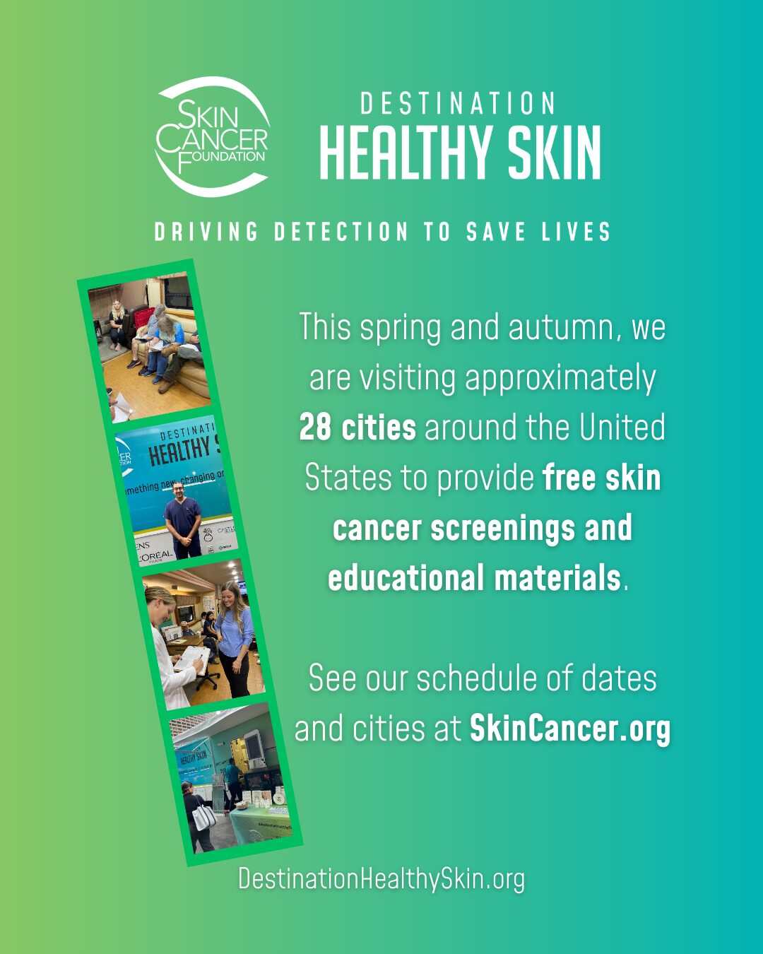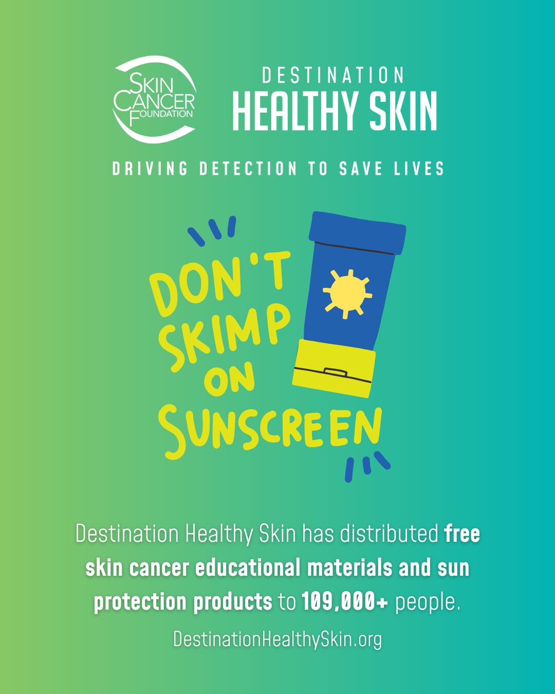 When posting, please use the hashtag #DestinationHealthySkin and tag us @TheSkinCancerFoundation on Facebook and @SkinCancerOrg on Threads, Instagram, X and TikTok.